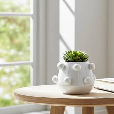 White Ceramic Tapered Bubble Decorative Planter | Stylish Home & Plant Décor